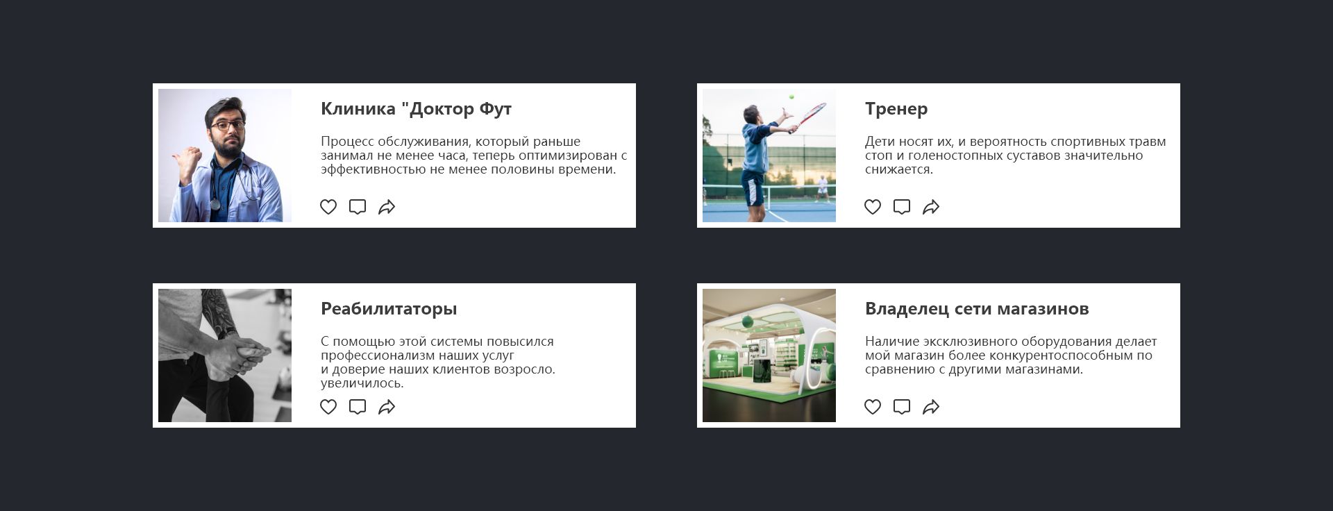 Решения FOOTWORK LAB®, которые применялись в спортивной реабилитации, клиниках подиатрии, медицинской стоматологии, реабилитационной медицине, спортивной подготовке, лечении диабетической стопы и других сценариях