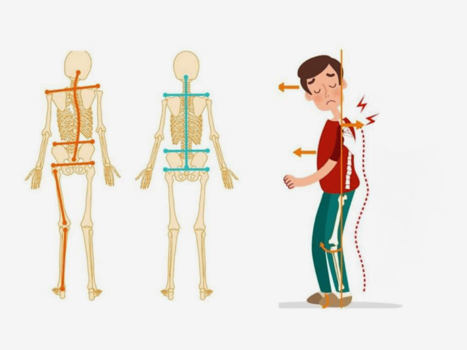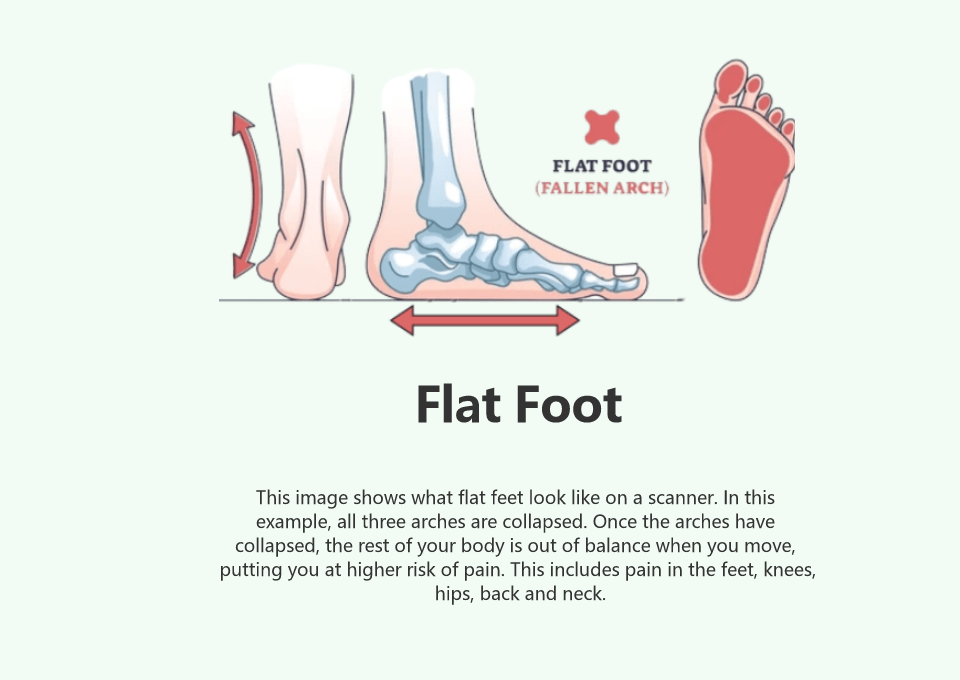 你的身体 身体评估图像显示脚部不平衡如何导致膝盖旋转、骨盆倾斜和肩部下垂。身体的这些不平衡可能是由足部的内旋和外旋引起的。 这些不稳定性可能导致足底筋膜炎、膝盖疼痛、臀部疼痛、背痛和颈部疼痛等病症。 正确对齐的身体将具有对称的双脚、水平的膝盖、骨盆和肩膀。佩戴定制矫形器可能有助于缓解不平衡以及由这些不平衡引起的状况。
