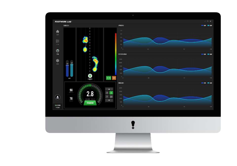 F5-LAB动态步态压力检测跑台包含集成的压力测量板,可以测量和分析行走和跑步时的压力分布情况。通过双动态视频采集可以有效采集用户步态周期数据,做出完整分析。