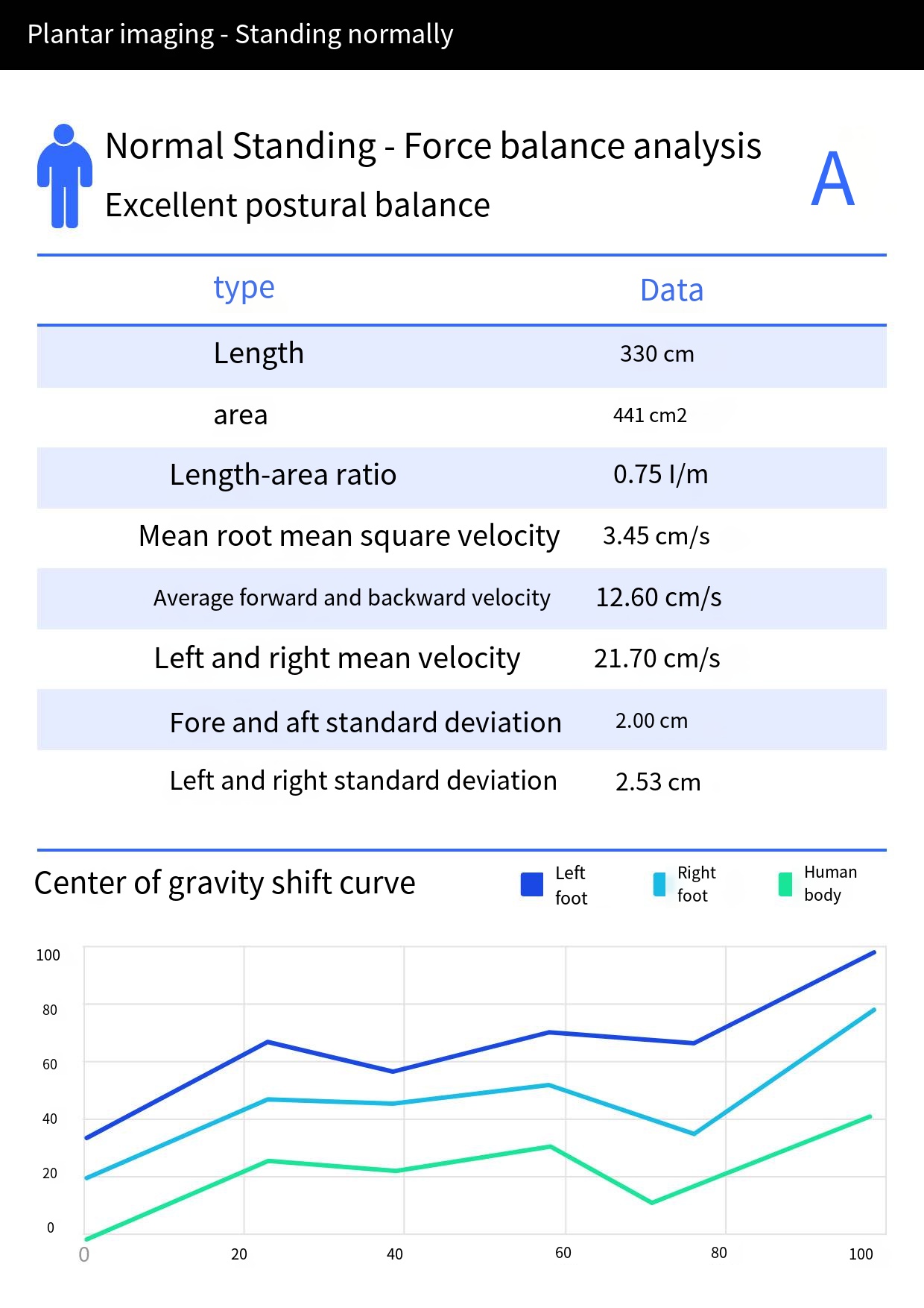 对使用者进行足部数据、下肢生物力线和全身体态等方面的多维度评估。