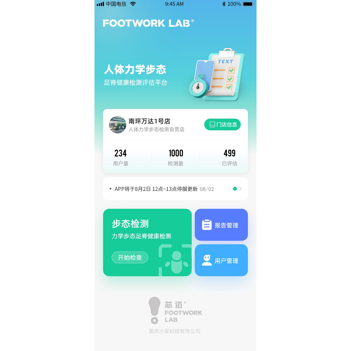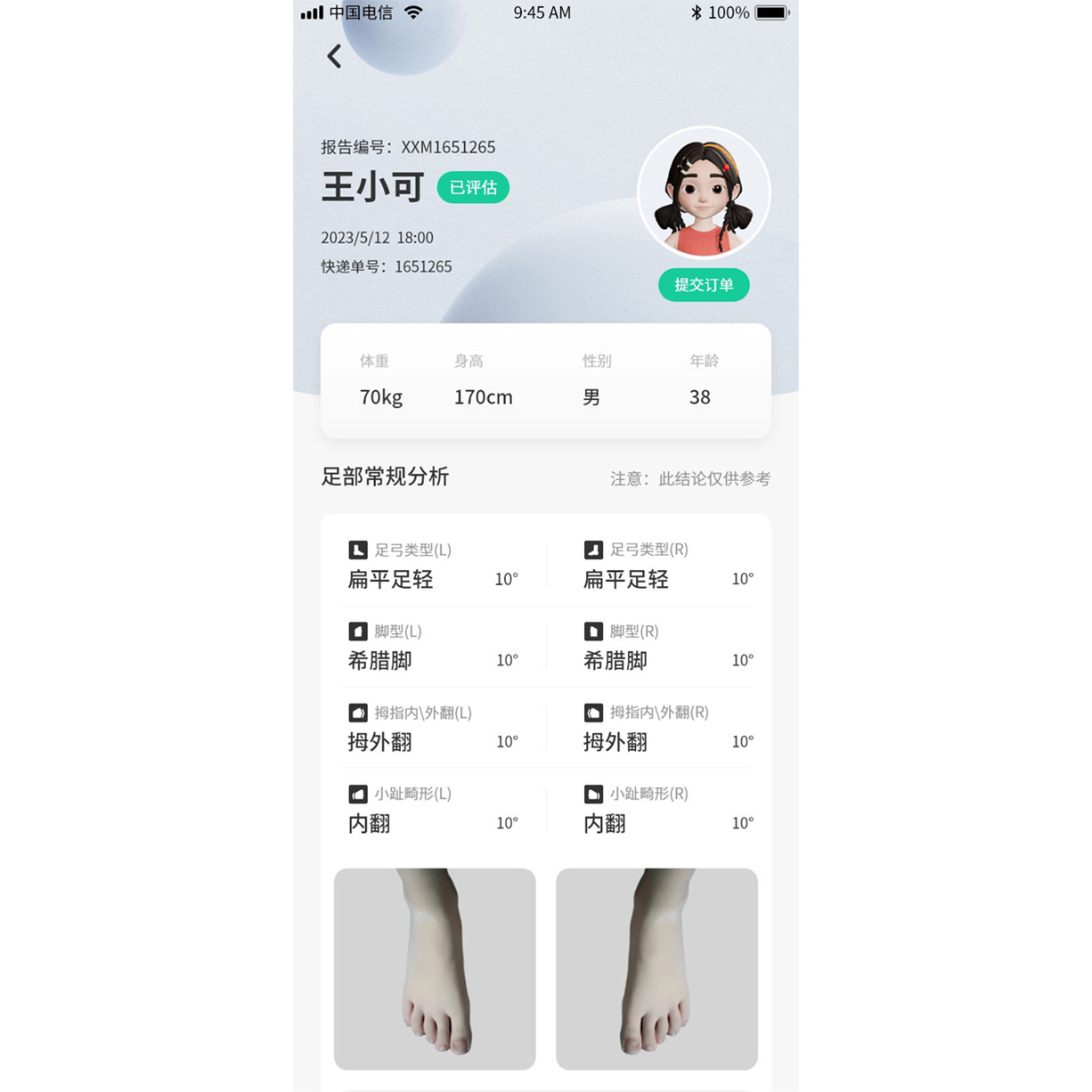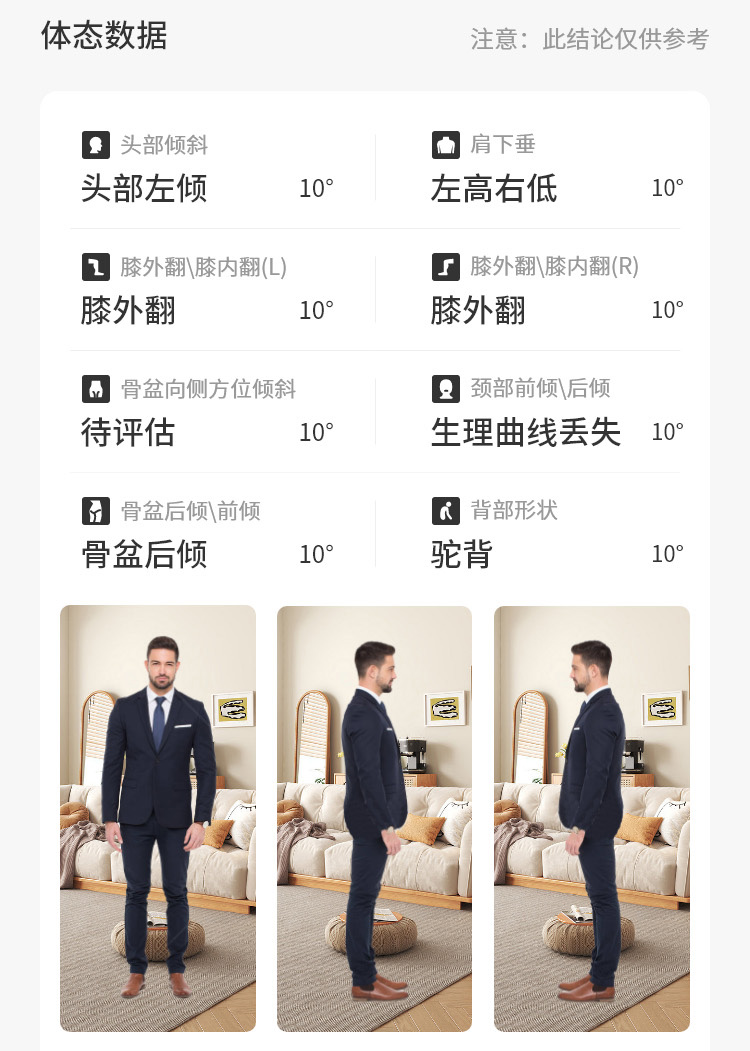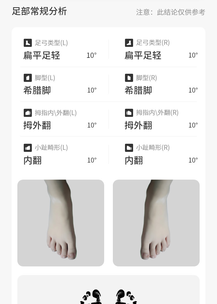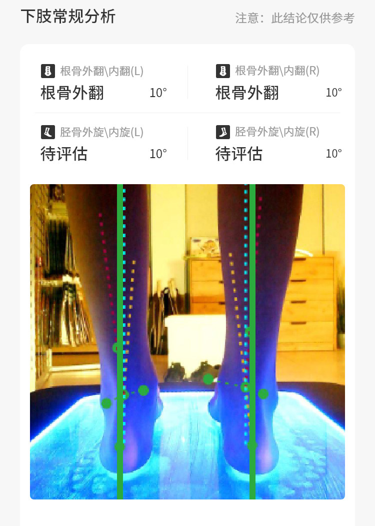 对使用者进行足部数据、下肢生物力线和全身体态等方面的多维度评估。